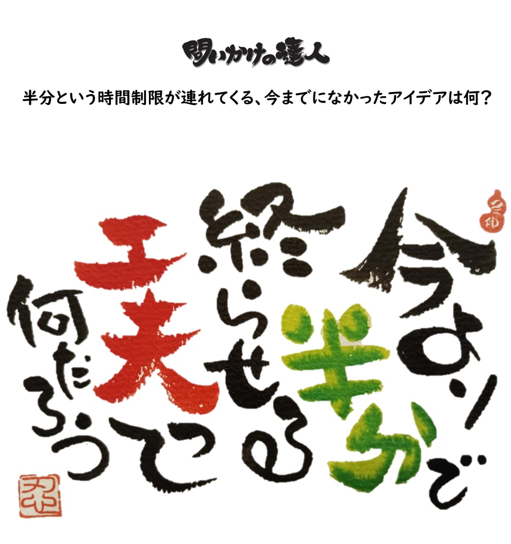ただ「流されていく時間」にするか「自分を取り戻すタカラモノの時間」に変えるかのカギは、実は問いかけにありました。